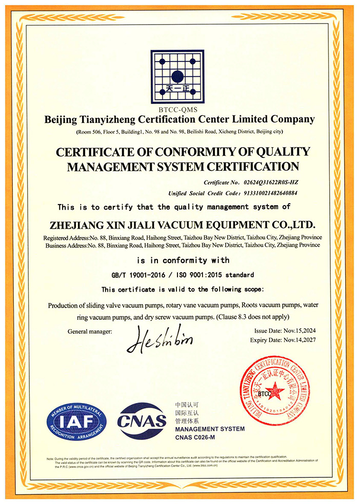 All rights reserved: Zhejiang Xin Jiali Vacuum Equipment Co.,Ltd. Technical support: